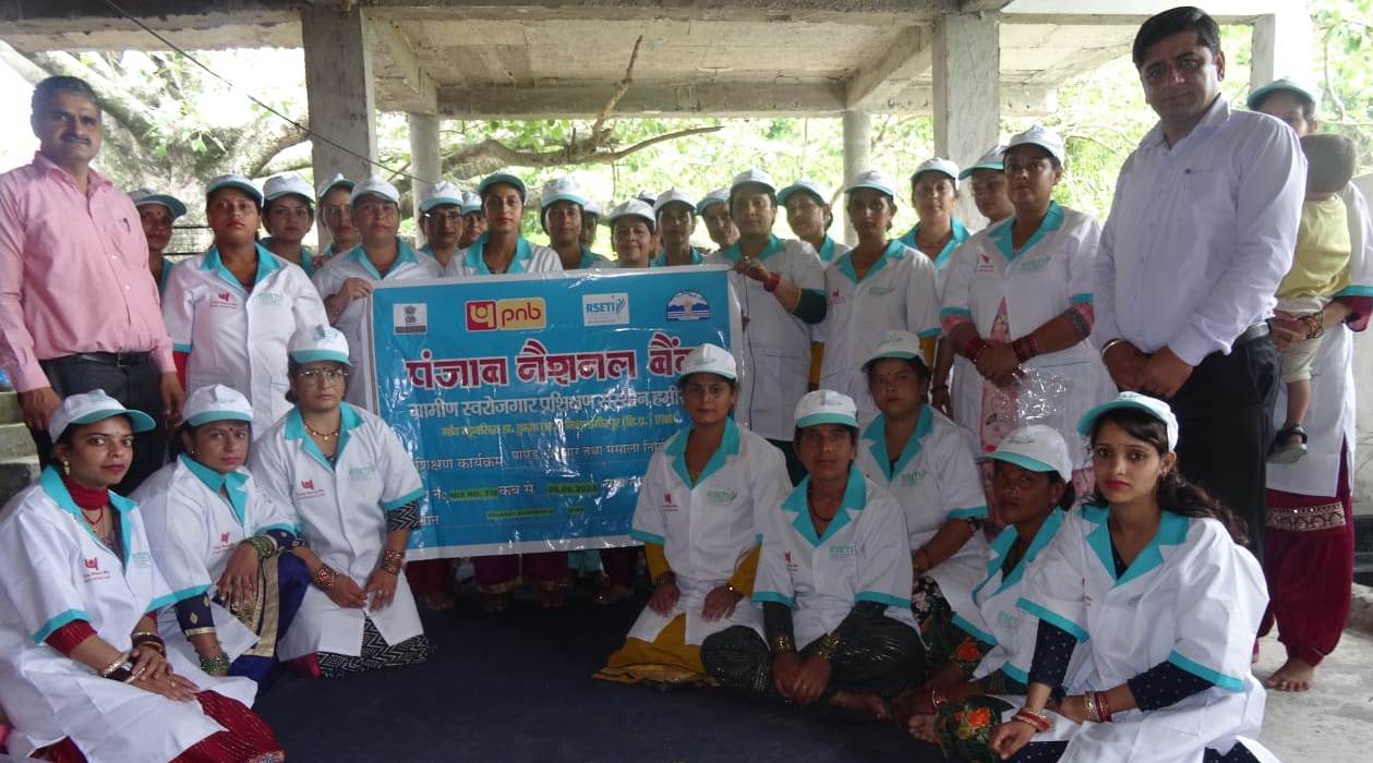 पंजाब नेशनल बैंक ग्रामीण स्वरोजगार प्रशिक्षण संस्थान (आरसेटी) मट्टनसिद्ध, हमीरपुर ग्रामीण महिलाओं को स्वावलंबी और उद्यमशील बनाने की दिशा में लगातार प्रशिक्षण शिविर आयोजित कर रहा है। इसी क्रम में बमसन ब्लॉक की ग्राम पंचायत चारियां दी धार के गांव कुडुआं दी धार में सोमवार को स्थानीय महिलाओं के लिए एक प्रशिक्षण शिविर आरंभ किया गया। इस शिविर में महिलाओं को अचार, पापड़ और मसाला पाउडर इत्यादि उत्पाद बनाने का प्रशिक्षण प्रदान किया जा रहा है।