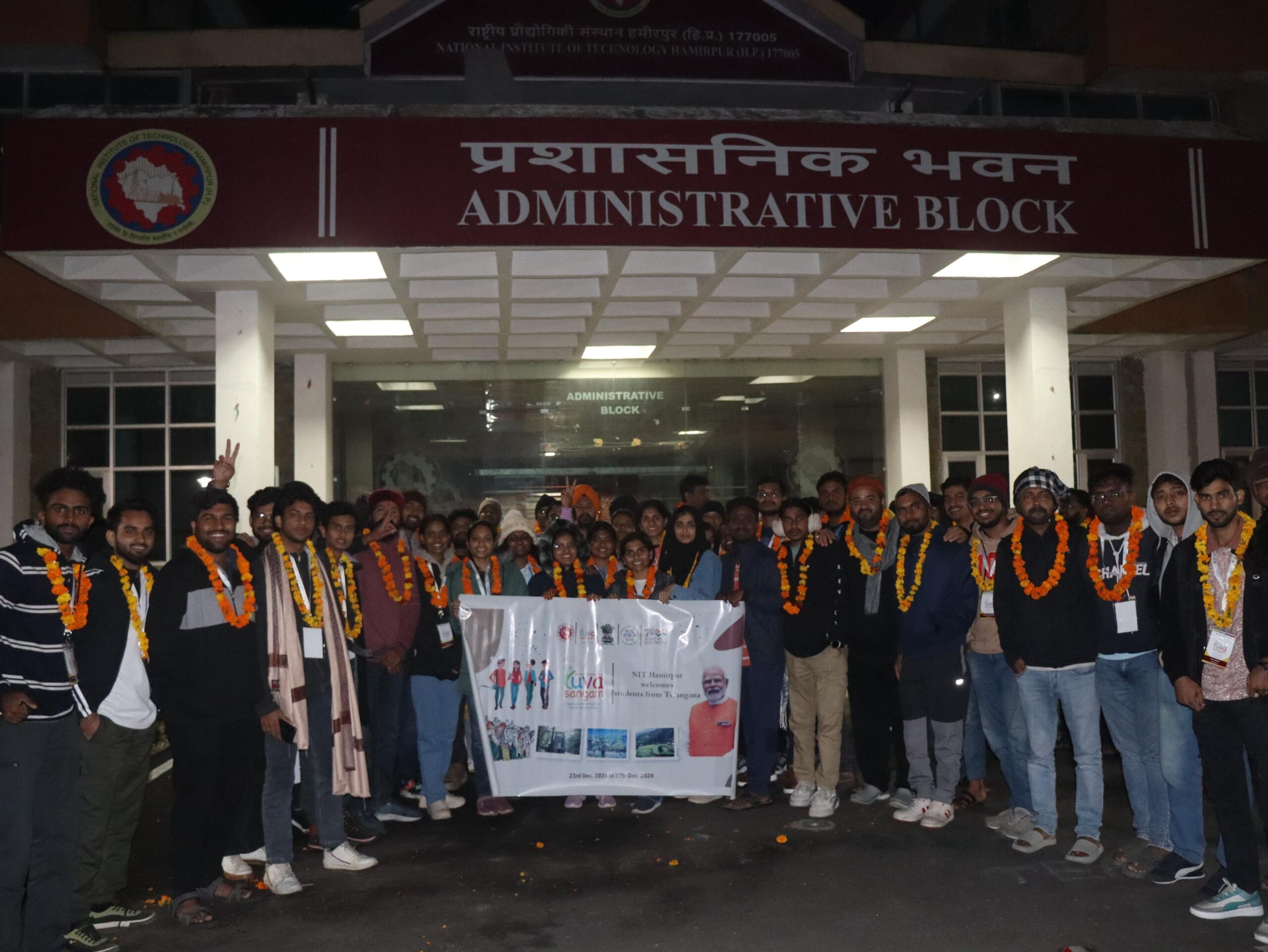युवा संगम के पांचवे चरण में भाग ले रहे तेलंगाना का प्रतिनिधिमंडल एनआईटी हमीरपुर में पहुंचा।18 से 30 वर्षीय इन युवाओं का सत्कार करने के लिए एक स्वागत समारोह आयोजित किया गया, इन युवाओं को एम.ए.एन.यू.यू. हैदराबाद द्वारा शैक्षिक एवं सांस्कृतिक यात्रा कार्यक्रम हेतु चुना गया है।इस प्रतिनिधिमंडल का औपचारिक स्वागत युवा संगम हेतु नोडल अधिकारी डॉ परम सिंह और सहायक नोडल अधिकारी डॉ श्रीराम टी.एस. ने किया।अपनी पांच दिवसीय हिमाचल प्रदेश यात्रा के दौरान ये सभी युवा धर्मशाला, पालमपुर और हमीरपुर के विभिन्न स्थलों का दौरा करेंगे और राज्य की समृद्ध सांस्कृतिक व प्राकृतिक सुंदरता का अनुभव प्राप्त करेंगे। एनआईटी हमीरपुर के निदेशक प्रो. हीरालाल मुरलीधर सूर्यवंशी तथा रजिस्ट्रार डॉ अर्चना संतोष नानोटी, स्टूडेंट वैल्फेयर डीन डॉ अशोक कुमार, स्टूडेंट ऐक्टिविटी व स्कॉलरशिप डीन डॉ प्रदीप सिंह ने सफल और समृद्धकारी यात्रा के लिए इस प्रतिनिधिमंडल को शुभकामनाएं प्रदान कीं।बहुप्रतीक्षित युवा संगम 5.0 के तहत इस यात्रा कार्यक्रम द्वारा एम.ए.एन.यू.यू., हैदराबाद, तेलंगाना के युवा एकजुट होकर देश की समृद्ध विविधता को सराहेंगे और इसके साथ अपना जुड़ाव कायम करेंगे। पर्यटन, परम्परा, प्रगति, प्रौद्योगिकी और परस्पर सम्पर्क पर केन्द्रित इस कार्यक्रम का ध्येय है एकता, नवोन्मेष और साझी प्रगति को प्रेरित करना।
