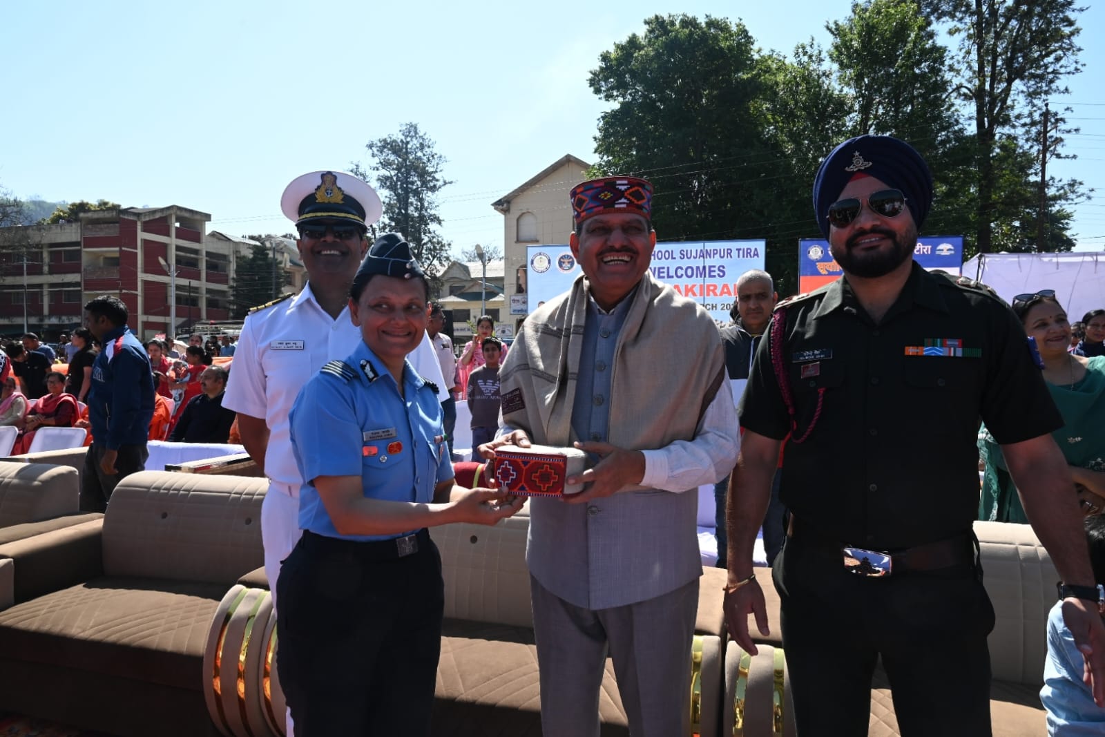 इससे पहले, सैनिक स्कूल की प्रधानाचार्य एवं वायु सेना की वरिष्ठ अधिकारी कैप्टन रचना जोशी ने विधायक कैप्टन रणजीत सिंह, डीसी गंधर्वा राठौड़, एसपी बलवीर सिंह, कटोच वंश के परिवार के सदस्यों और अन्य अतिथियों का स्वागत किया तथा एयर शो से संबंधित प्रबंधों की जानकारी दी। इस अवसर पर एडीसी अभिषेक गर्ग, एसडीएम सुजानपुर विकास शुक्ला, एसडीएम हमीरपुर संजीत सिंह, सहायक आयुक्त चिराग शर्मा और अन्य अधिकारी भी उपस्थित रहे।