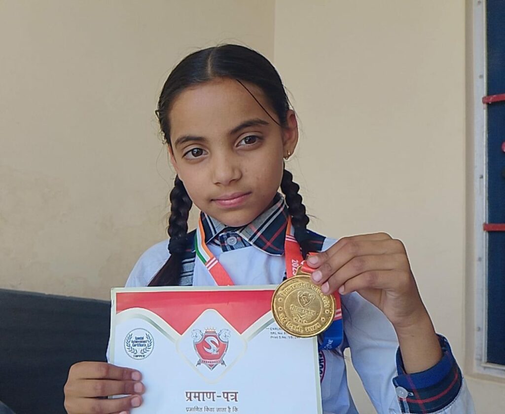 कराड़ा की भानवी ठाकुर ने हिंदी ओलंपियाड में झटका प्रथम स्थान,प्रमाण पत्र और मेडल देकर किया सम्मानित