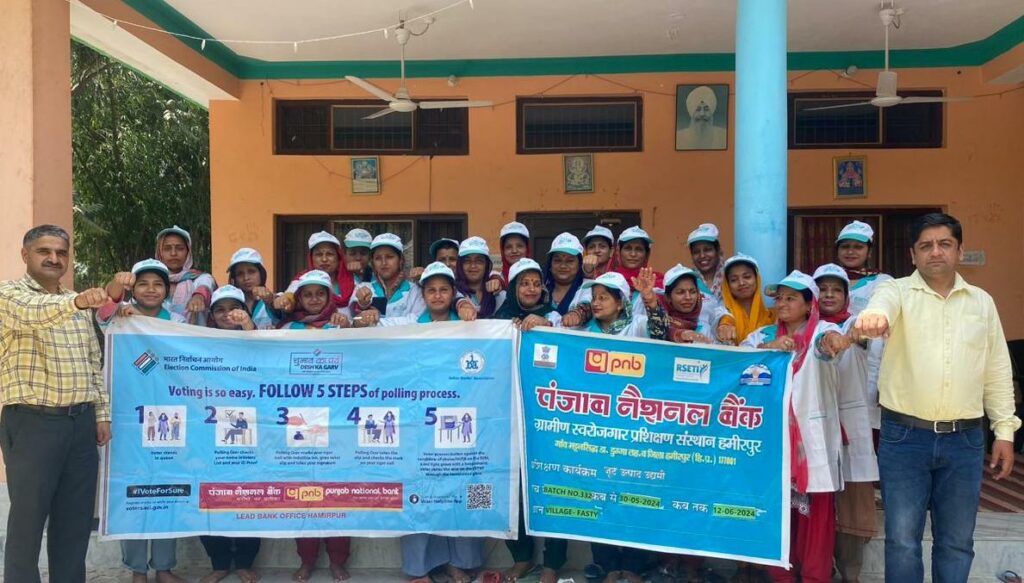 हमीरपुर । पंजाब नेशनल बैंक ग्रामीण स्वरोजगार प्रशिक्षण संस्थान (आरसेटी) हमीरपुर द्वारा नादौन उपमंडल के गांव फस्टे में महिलाओं के लिए आयोजित किए जा रहे जूट उत्पाद निर्माण प्रशिक्षण कार्यक्रम में भारत निर्वाचन आयोग के मतदाता जागरुकता कार्यक्रम ‘स्वीप’ के तहत एक जागरुकता सत्र भी आयोजित किया गया। इस जागरुकता सत्र में आरसेटी के निदेशक […]