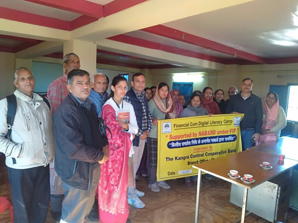 हमीरपुर । कांगड़ा केंद्रीय सहकारी बैंक की उहल शाखा ने नाबार्ड के सहयोग से गांव उहल में वित्तीय साक्षरता शिविर आयोजित किया। इस शिविर में शाखा प्रबंधक रजनीश ठाकुर और संजीव कुमार ने ग्रामीणों को किसान क्रेडिट कार्ड, स्वरोजगार ऋण, वाहन ऋण, गृह निर्माण ऋण, पीएम फसल बीमा योजना, पीएम सुरक्षा बीमा योजना, पीएम जीवन […]